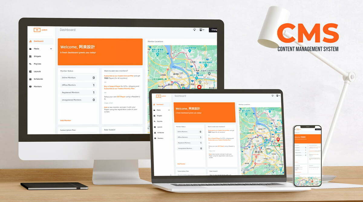 簡介數位看板CMS-內容管理系統 從使用者角度分享數位看板CMS構成與概念 作者 Adam 2022 年 7 月 11 日 作者 Adam 2022 年 7 月 11 日 7 mins 閱讀時間 2.6K 目錄 前言甚麼是CMS?數位看板CMS的運作原理是甚麼?數位看板CMS運作各部份說明。使用端雲端(伺服器)播放端市場上各家數位看板CMS有何不同?我該選擇哪一種CMS伺服器架構?我可以不走網路選擇單機使用嗎?結語 前言 剛接觸數位看板的朋友,除了琳瑯滿目的硬體規格以外,最讓人摸不著頭緒的,應該就屬數位看板中的操作系統。 扣除功能較陽春的USB單機播放系統不說,這幾年完全雲端化的CMS內容管理系統,也早已成為各家廠商的主力賣點,憑藉著強大控管與客製化的能力,幾乎已完全取代,數位看板單機播放及早期固定版型的市場,但相對的在運作及操作上也比較複雜。 這篇文章我們將以使用者的角度,以最簡單的方式與大家分享我們對CMS的概念與建議。 甚麼是CMS? CMS(Content Management System 內容管理系統)是網路時代的專有名詞,在廣泛定義上,可以理解為一種專門管理網站內容的系統(或稱網站管理後台),它的優點為不需要具備程式或語言基礎,即可透過視窗、圖形及直覺的操作介面,針對網站進行各項控制與管理。 比如阿美設計所使用的WordPress,就是一款相當知名PHP架構的CMS平台。 雖然CMS已在企業與網站管理運用上相當普及,但對於一個單純的數位看板使用者而言,CMS還是需要相當花費心思學習的,而CMS也往往是在數位看板構成的元件中,最讓人摸不著頭緒的部分。 畢竟,其它硬體類元件,比如液晶電視/面板規格,不僅摸的到看的到,各種型號規格甚至到網路評價,只要廠商用心加上自己有心,全部都可以獲得相對足夠的資訊。 但唯獨就是CMS這個橫跨系統、軟體到網路的的核心元件,除非親身試過,不然還真的不是那麼容易理解及操作,更何況加上各家廠商的獨門絕技或頭銜的加持,站在門外的使用者(包含阿美),在沒什麼選擇與比較的前提下,往往只能捏把冷汗,頭先洗下去再說了。 數位看板CMS的運作原理是甚麼? 數位看板與網站/網頁的CMS架構大致相同,都是透過網路連接雲端(伺服器),進行使用端與播放端的聯繫與資訊管理。而操作模式基本上是相同的,唯一的差別僅在於網站的前台頁面(等同數位看板的播放端)是開放給所有大眾瀏覽,而數位看板是針對特定地點及設備(螢幕)播放。 數位看板CMS運作各部份說明。 接著我們簡單說明CMS中,使用端、播放端與雲端(伺服器)的主要功能與職責: 使用端 使用端 就是利用電腦或手機平板等裝置,透過瀏覽器或App連線到伺服器,進行CMS操作或協作的個人或多人使用者,其中多人的部分可藉由授權管理,給予不同帳號階層的CMS操作權限。 雲端(伺服器) 雲端(伺服器) 提供使用端及播放端的資料傳輸、儲存、管理、系統與安全等功能,現今數位看板CMS所提供的雲端伺服器服務,亦分為公有雲(架設在如Amazon、Google及微軟等大型雲端供應商)及私有雲(架設在數位看板廠商自家機房或自備電腦替代伺服器(自架私有雲))二種架構。 通常除了利用自備電腦替代伺服器的方案,使用者不需支付服務或維護費,其餘方案都會有按月/年收取的雲端服務費用產生。 播放端 基本上播放器(Player)就是一台性能強悍且省電的小型/微型電腦,它的主要任務就是處理來自伺服器的資訊以及來自伺服器的指令等,然後在螢幕上忠實完整的呈現及執行。 並且由於科技的進步與內容的追求,超高解析(如4K)、動態畫面、影片串流或即時資訊等,對於播放器硬體規格也是相當考驗,更何況還兼具備省電及穩定性的特點。 目前市場播放器規格以ARM核心架構,搭配Android或Linux系統為主,其中主流處理器像是Rockchip瑞芯微、Allwinner全志及Qualcomm高通等,都已是很普遍的規格,上市也都有相當時間,在效能、供耗及穩定度各方面的表現亦相當成熟,同時硬體價格卻只有Windows系統的一半不到。 這點也反映出Windows架構的電腦或播放器,在數位看板的應用上較不普及的原因之一。 播放端 市場上各家數位看板CMS有何不同? 以我們測試過的經驗來說,現行市場數位看板各家廠商的CMS,在功能與支援度上可以說是不分軒輊,都是相當完整、成熟且穩定的內容管理系統。 但由於每家數位看板廠商,在視覺及操作介面皆不相同,各具特色但互不相容,所以使用者勢必要花時間學習操作,這也是報價中常見的,教育訓練費用的緣由(常與設備綑綁免費提供)。 同時也代表,如果每更換一次數位看板廠商,就必需重新學習新的CMS,對於時間與人力,也是相對的支出。 我該選擇哪一種CMS伺服器架構? 我們按照使用需求、CMS架構及費用製作了一個簡表如下,其中多點或多台螢幕應用的使用者(包含矩陣或排列螢幕),在控管程度上需求較高,採用需維護費用的雲端付費方案,在多帳號及螢幕的管理上將會比較簡單。 使用需求CMS雲端架構維護費用CMS提供廠商單點單台公有雲免費方案/自架私有雲伺服器$0每台/每年Yodeck/Free Plan單點多台多點多台電視牆公有雲私有雲付費方案/自架私有雲伺服器約$3,600以上每台/每年/$0每台/每年YodeckoptisignsMagicInfo SNoviSign… 我可以不走網路選擇單機使用嗎? 完全沒問題,播放器均會具備多個USB擴充埠,透過USB隨身碟,即可完成媒體資料傳輸到播放器。 比較特別的是,由於在CMS的架構下,所有的媒體資料,均會在使用端、播放端及雲端進行同步的